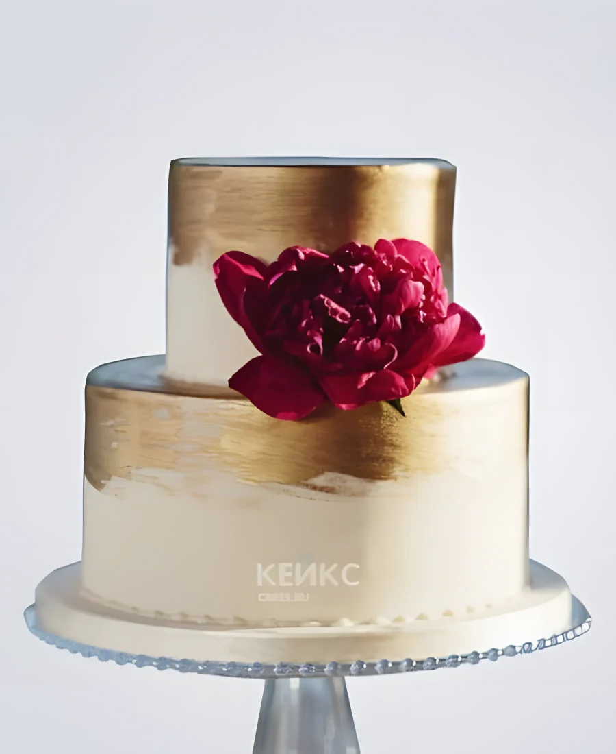 Красивый торт в восточном стиле с сусальным золотом и ярким цветком