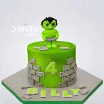 Ярко-зеленый торт с фигуркой Халка и кирпичами