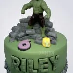 Торт с фигуркой Халка и серой полуразрушенной стеной