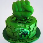Ярко-зеленый торт Халк с кулаком и кирпичами