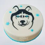 Стильный торт с голубыми снежинками и мордой хаски