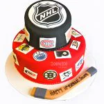 Этот торт создан для настоящих поклонников хоккея! Белоснежная глазурь имитирует ледовое поле, а контрастные черные линии — разметку. По краям — миниатюрные хоккейные ворота и клюшки, а в центре — съедобная шайба. Красные акценты добавляют динамики, словно всплеск эмоций во время игры. Простой, но выразительный дизайн сразу передает атмосферу любимого спорта.