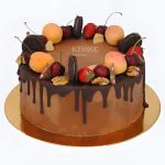 Этот вкусный торт украшен большим количеством фруктов и печенья, поэтому идеально подойдет для подарка или празднования дня рождения.