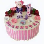 Розовый торт на годик девочке с ягодами