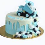 Голубой торт с грузовой машиной со сладостями