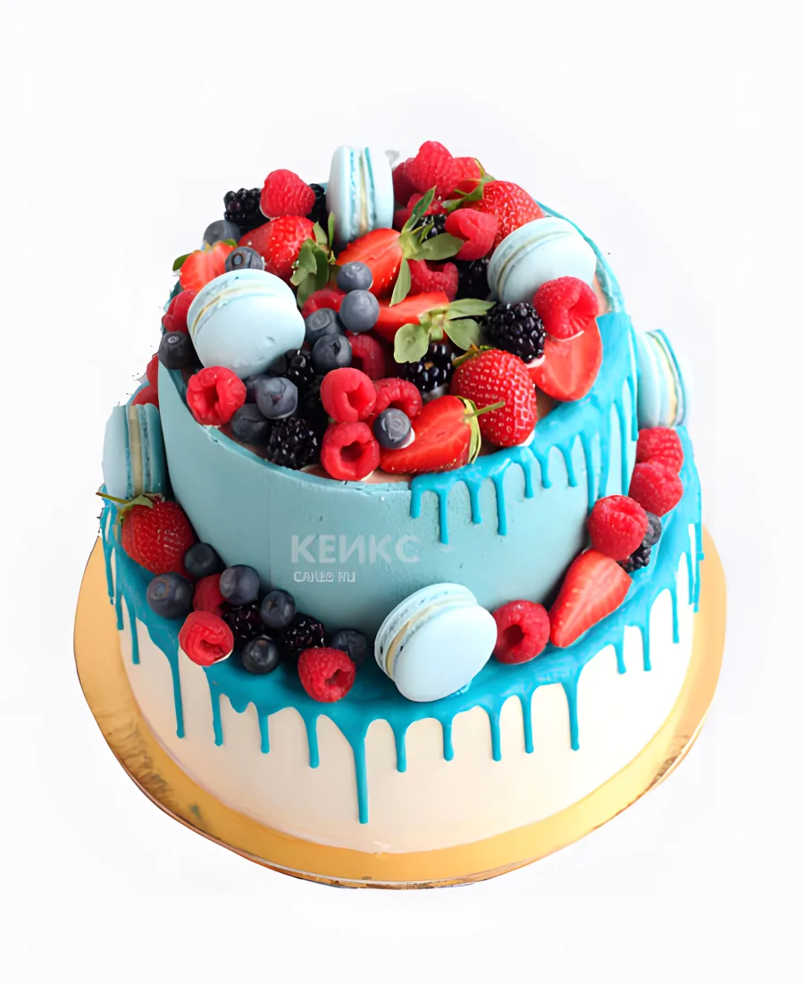 Нежный голубой торт ягодный с макарунс