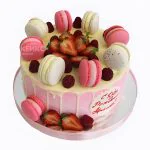 Розовый торт с ягодами и макарунами
