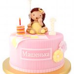 Нежно-розовый торт с фигуркой ежика и тортом со свечкой