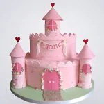 Торт в виде розового замка с башнями