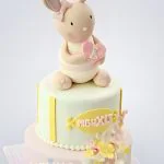 Торт в пастельных тонах с фигуркой зайца и сердцем