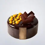 Шоколадный зеркальный торт с элементами желтого