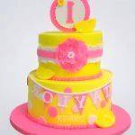 Прикольный торт желто-розовый с цифром