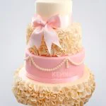 Шикарный торт желто-розовый с бантом и рюшами