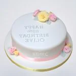 Нежный торт желто-розовый с надписью