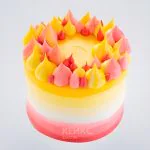 Нежный торт в пастельных тонах словно окутан воздушным облаком крема. Сочетание мягкого розового и солнечно-желтого создает весеннее настроение. Плавные волны крема и деликатные завитки придают десерту трогательную легкость. Круглая форма подчеркивает гармоничность композиции, а отсутствие лишних деталей делает торт элегантным и стильным. Этот десерт — словно воплощение нежности и радости.