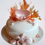 Этот торт — словно маленький шедевр из морских глубин. Нежно-голубая мастика имитирует переливы океана, а изящные коралловые ветви и сияющая жемчужина создают волшебную атмосферу подводного царства. Каждая деталь проработана с удивительной точностью: фактура кораллов, мягкие волны покрытия, игра оттенков от бирюзового до лазурного. Торт выглядит одновременно хрупким и величественным, будто сошедшим со страниц сказки о русалках.