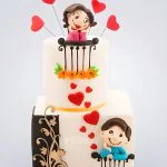 Торт двухъярусный с сердцами и влюбленными