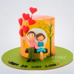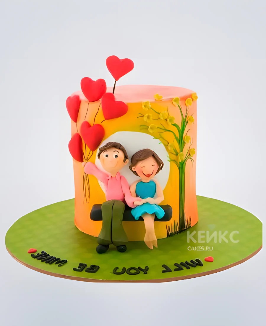 Милый торт с влюбленными на лавочке