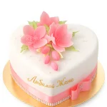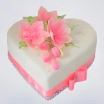 Торт в виде сердца с ярко-розовыми цветами