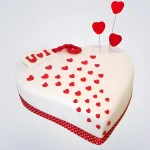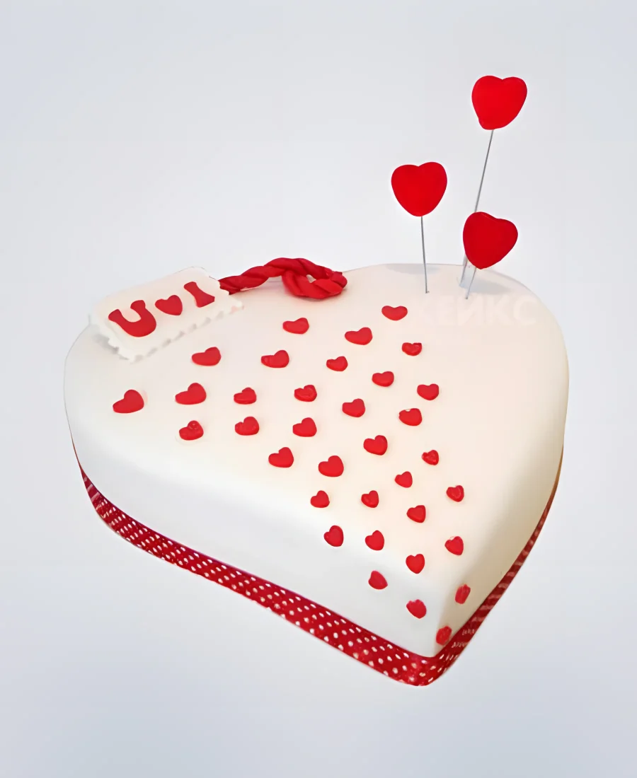 Белый торт с красными мини-сердцами