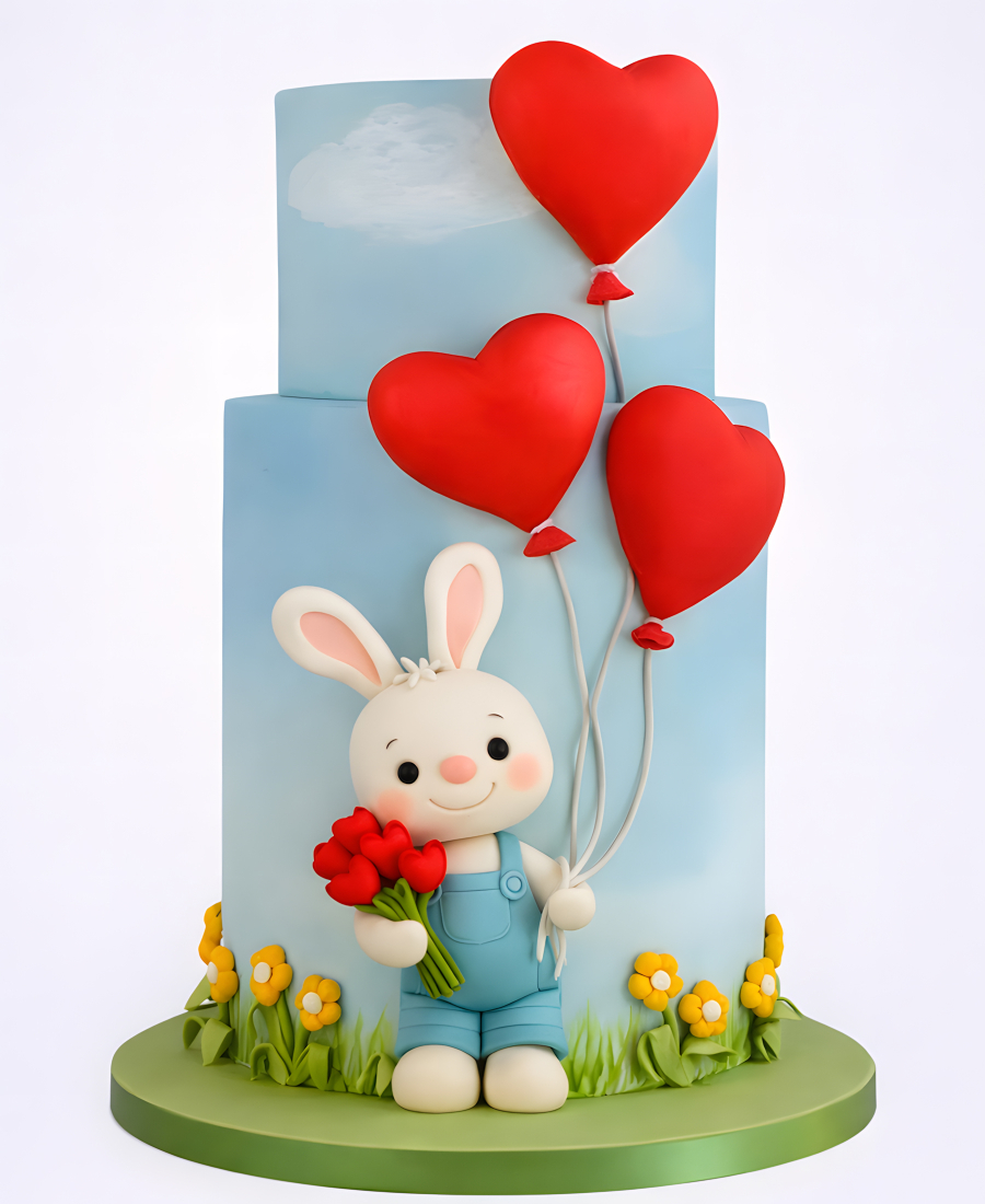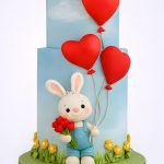 Торт голубой с мишкой и шарами