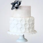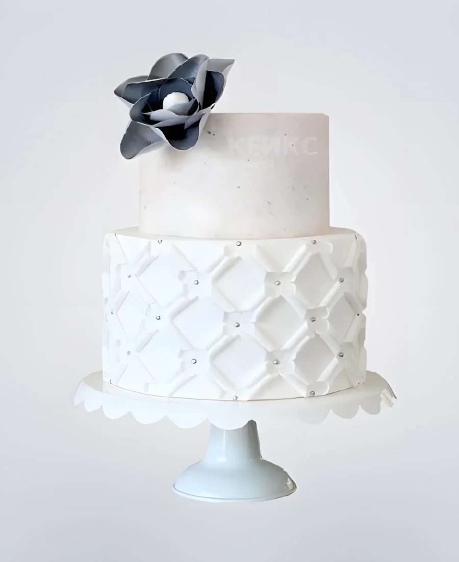 Белый двухъярусный торт с синим цветком