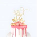 Торт женщине на 30 лет с розовыми подтеками и золотыми лепестками