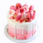 Бело-розовый торт с яркими макарунс