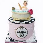 Этот торт — настоящая миниатюрная картина! На белоснежной мастике изображена стильная девушка, расслабленно лежащая в ванной с бокалом вина. Пастельные оттенки розового, золотистого и бежевого создают уютную атмосферу. Ванна с позолоченными ножками, пузырьки пены и даже маленькая уточка — все детали проработаны с любовью. Торт выглядит как иллюстрация из модного журнала, передавая настроение отдыха и женственности.