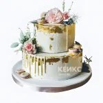 Торт женщине на 50 лет с живыми цветами и макарунсами