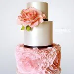 Розовый торт Женщине на юбилей 25 лет с кружевами и большим цветком