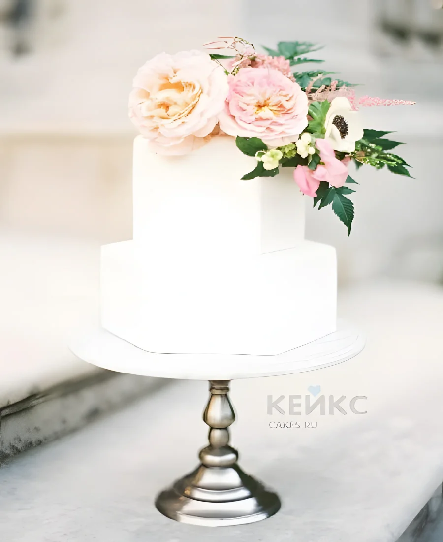 Белый торт с цветами на юбилей девушке