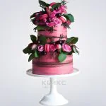 Розовый торт с цветами на юбилей девушке 30 лет