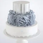 Бело-голубой торт с рюшами и полосами для женщины на юбилей 30 лет