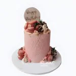 Торт женщине на юбилей 30 лет с макарунсами и клубникой