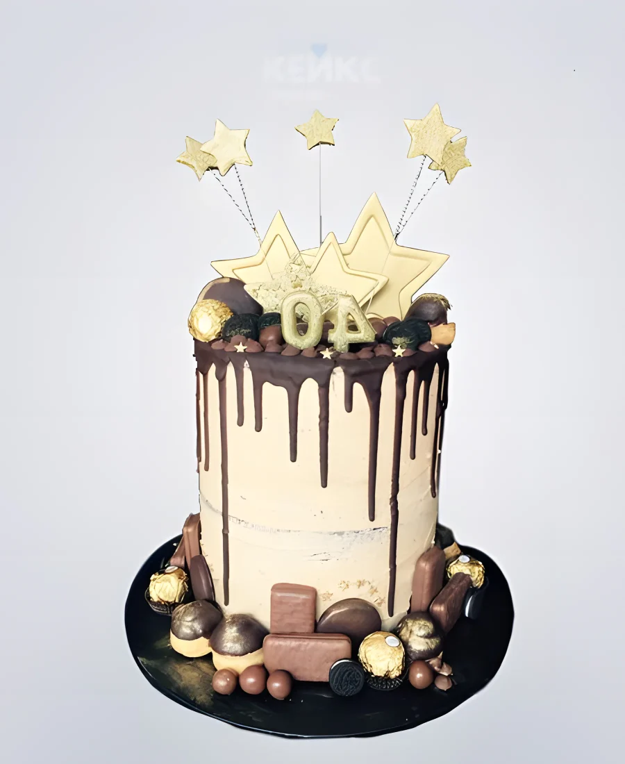Торт Женщине на юбилей 40 лет с шоколадными сладостями и звездами