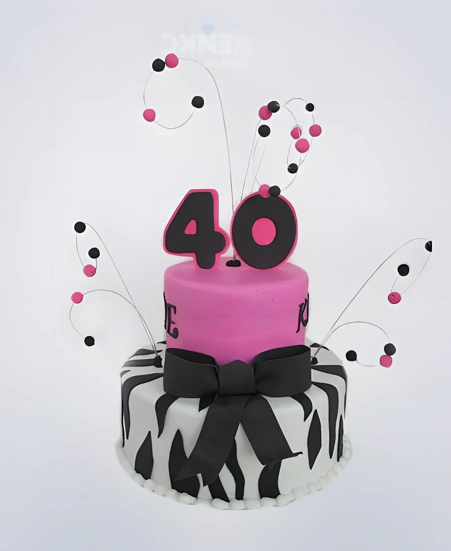 Разноцветный торт женщине на юбилей 40 лет с цифрой и бусинами