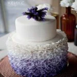 Фиолетово-белый торт с рюшами на юбилей