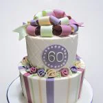 Торт на юбилей женщине 60 лет с разноцветным бантиком