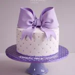 Торт на юбилей женщине 60 лет с сиреневым бантом