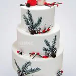 Уютный зимний свадебный торт с птицами