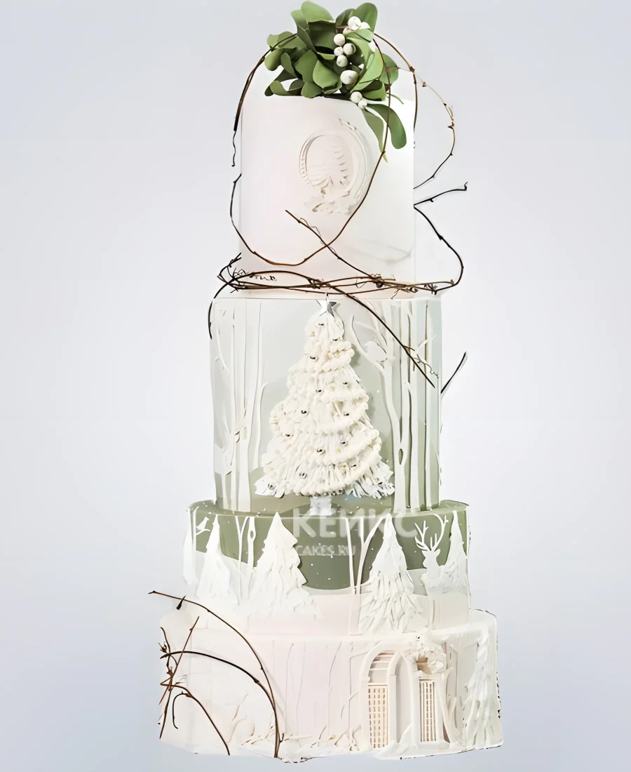 Нарядный зимний свадебный торт