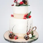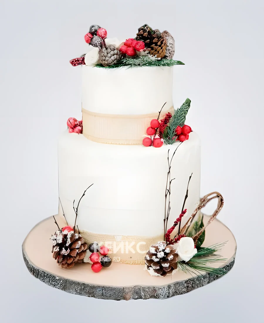 Двухъярусный торт зимний свадебный с шишками