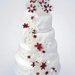 Белый зимний свадебный торт со снежинками
