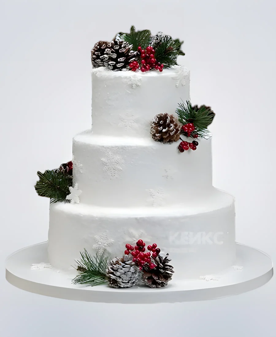 Свадебный торт в зимней тематике с шишками