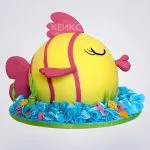 Яркий торт в виде золотой рыбки с розовыми губами