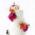 Трендовый свадебный торт с фигуркой собаки и цветами