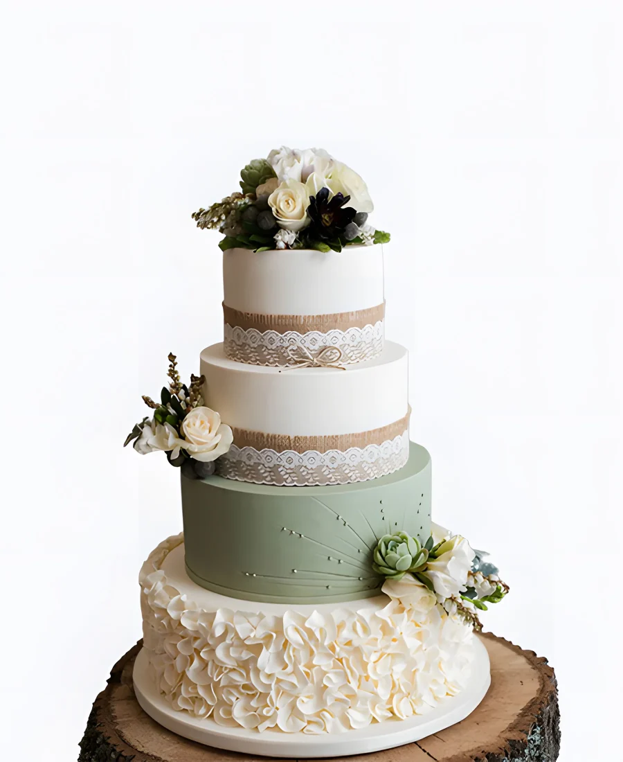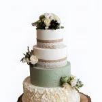 Трендовый свадебный торт с кружевом и цветами