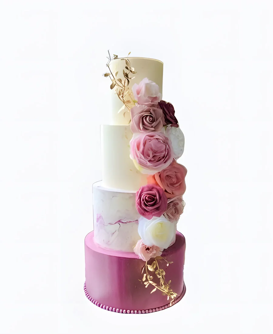 Трендовый свадебный торт с разноцветными розами
