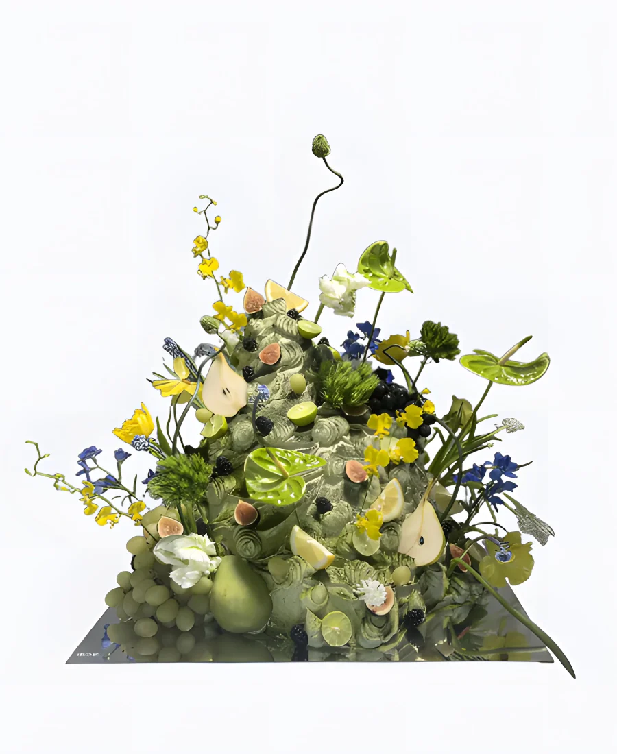 Трендовый торт на свадьбу с цветами и фруктами